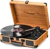Asmuse Turntable Record Player, retro design vinyl record player. Combining elegant looks with practical, modern functionality, the portable carrying case lets you listen to music anytime, anywhere.